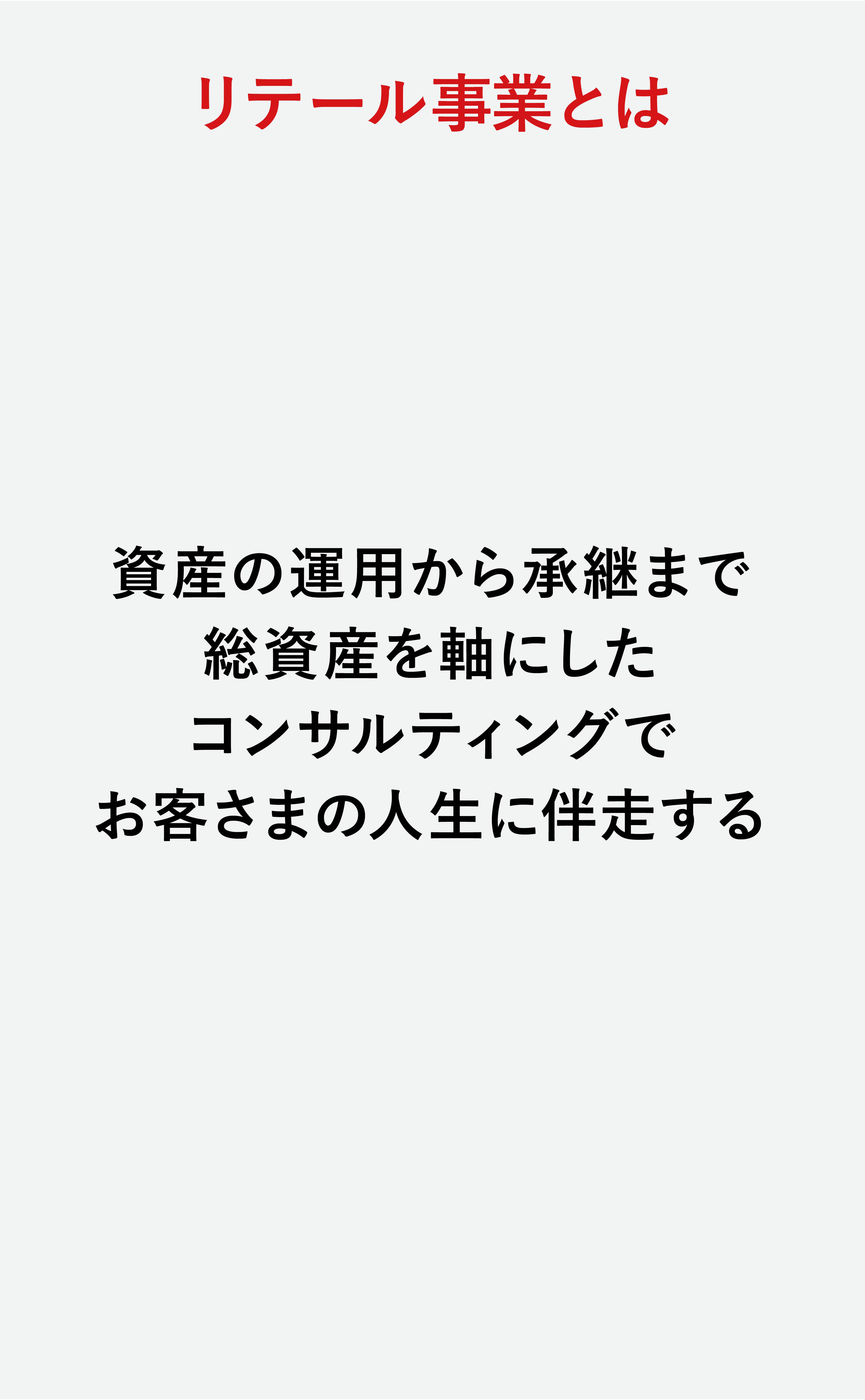 個人のお客さまに対しては、総資産のコンサルティングを軸とした「リテール事業」、「不動産事業」を。