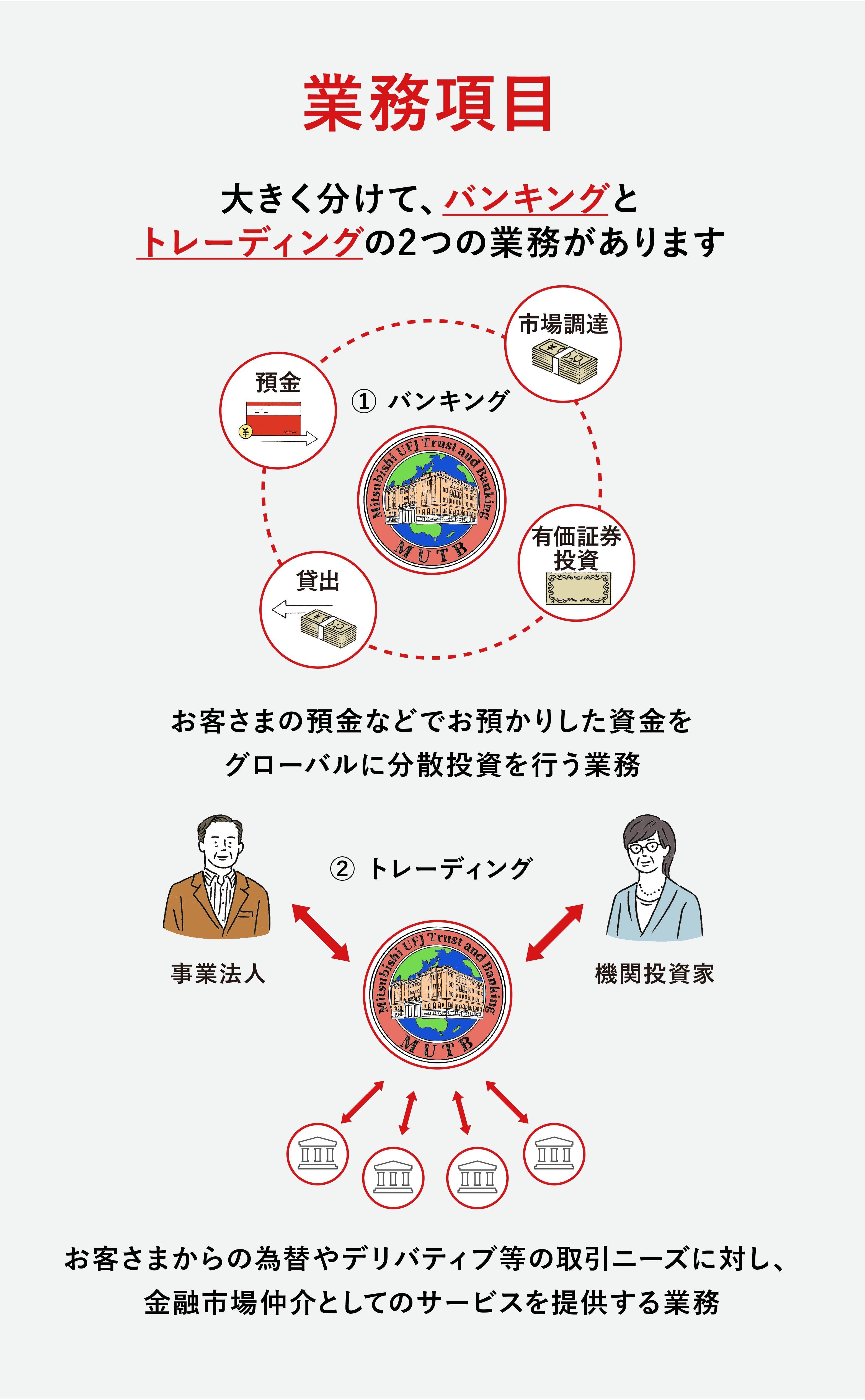 また、「資産管理事業」は、運用資産としてお預かりした資産の決済・保管などのサービスをグローバルに行っており、三菱UFJ信託銀行は世界でもトップレベルの資産管理機関です。
