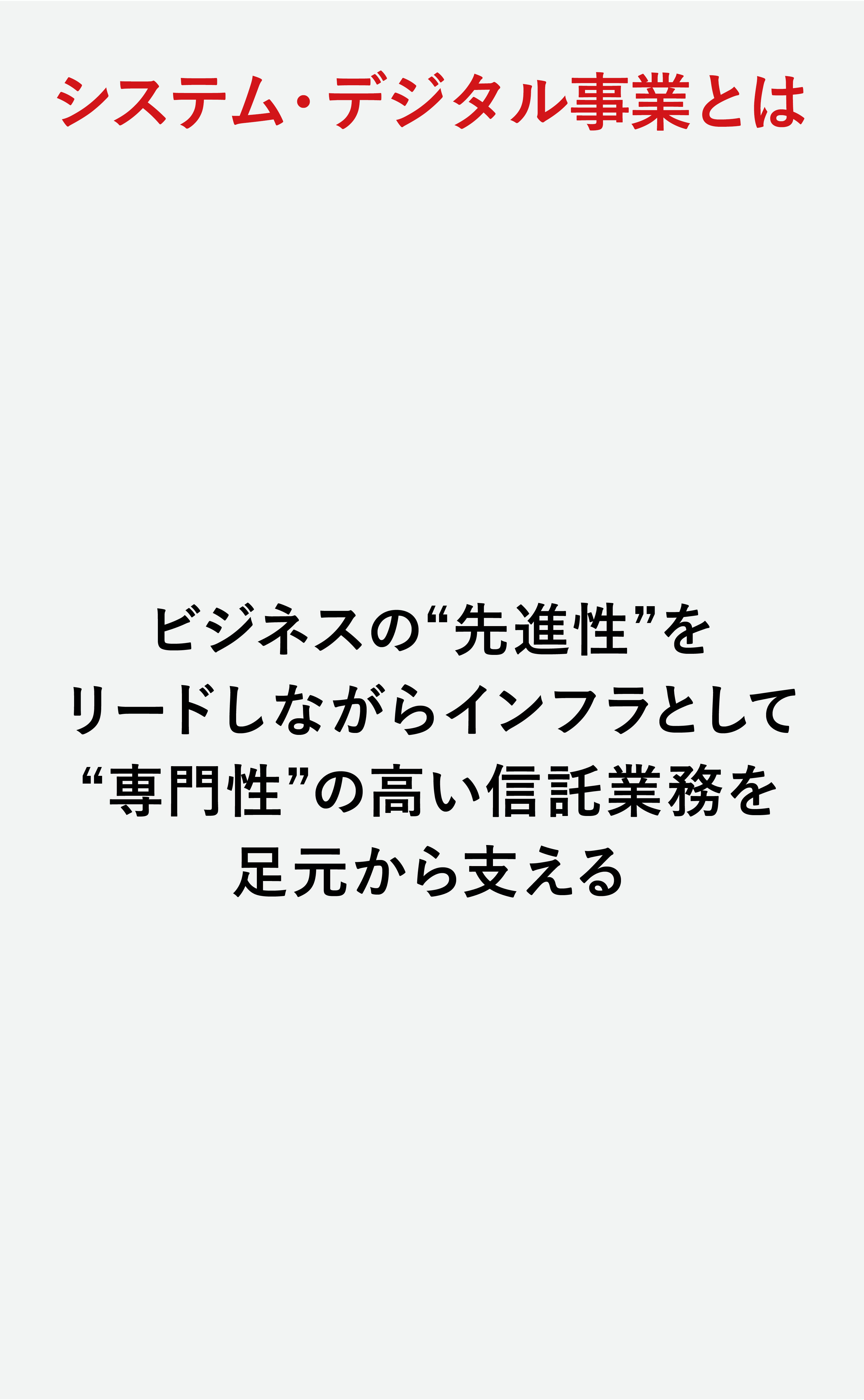 ビジネスの先進性をリードしながら、インフラとして専門性の高い信託ビジネスを足元から支える