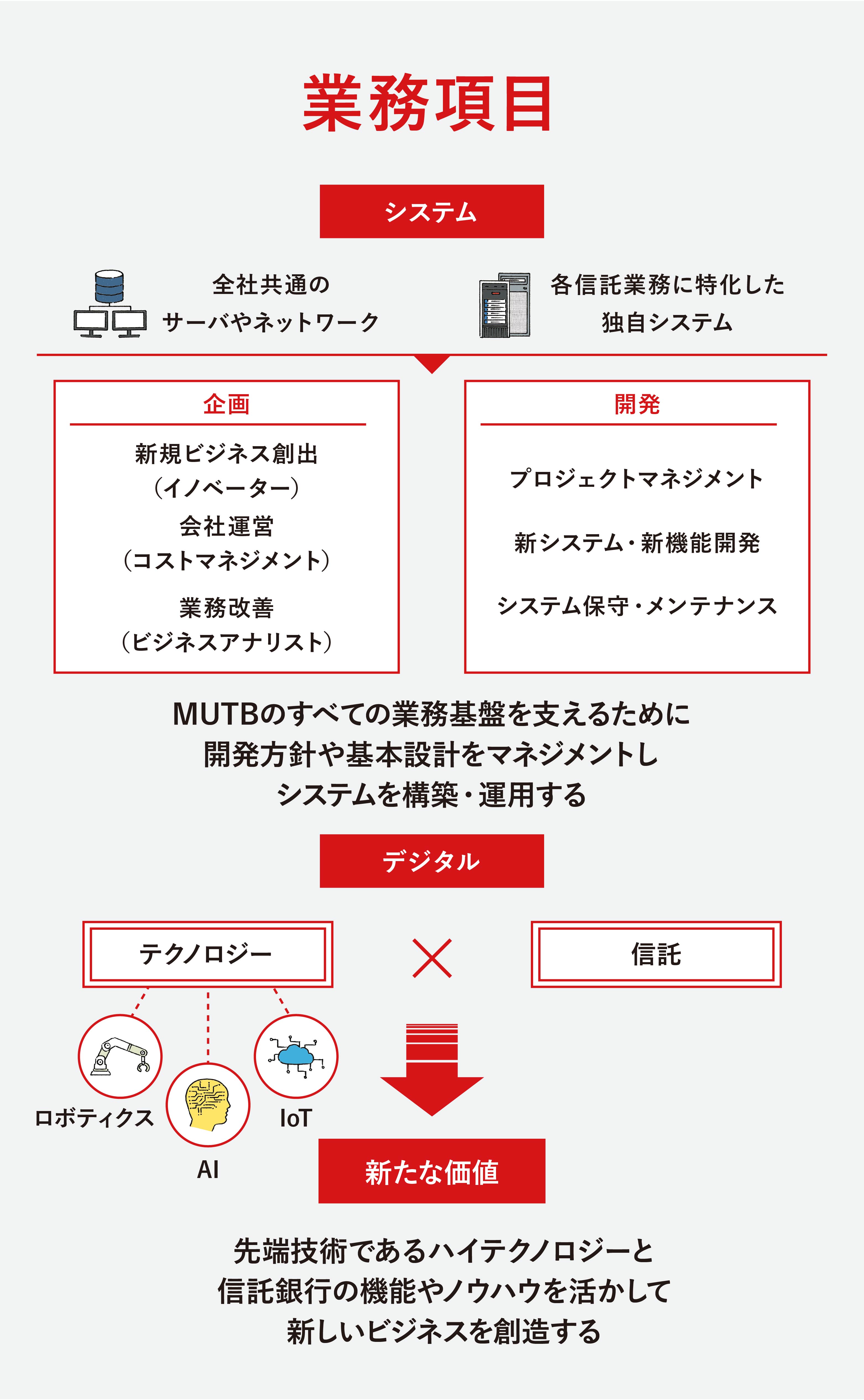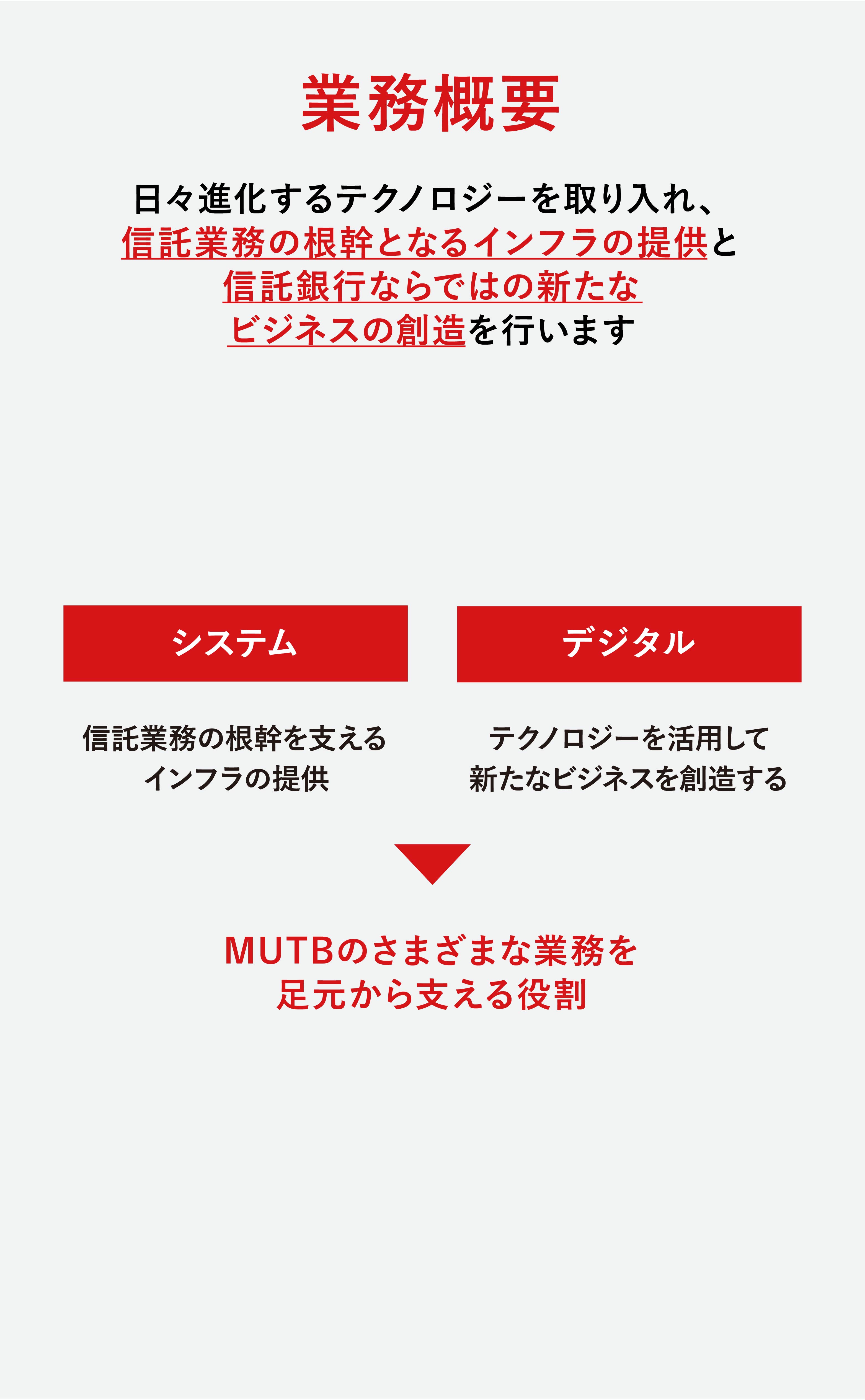 さらには、これらの事業展開を支える、三菱UFJ信託銀行におけるバランスシートのマネジメントを担う「市場事業」と、すべての事業のシステムインフラの構築やDXなど新しい領域にも挑戦する「システム・デジタル事業」があります。